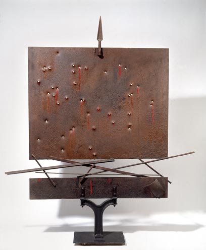 עבודה מרתקת מאד היא פסל אסמבלאז' קינטי בעל אלמטים סימבולים, הנושא את השם עם משחק המילים: "Arme-Alarme-Larme" ("נשק-אזעקה-דמעה"), שווה מאד להקדיש לו מחשבה תוך תשומת לב לשם היצירה.