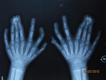 צילום רנטגן של אצבעות הידיים, חלקן דבוקות (צילום: AP)