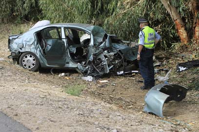 המכונית המרוסקת. פעולת פינוי גופות מורכבת (צילום: צפריר אביוב)