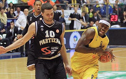 אנדרסון בין שחקני פרטיזן. לא כפה עצמו על המשחק (צילום: אלי אלגרט)