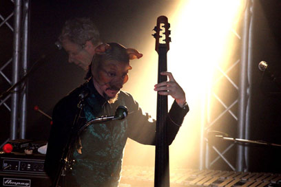 קלייפול לא צחק באותו הראיון שערכנו איתו כשאמר שהוא מביא איתו את "המוטציות שלו". שלושת חברי להקתו המוכשרים לבושים בחליפות טוקסידו ובמסכות של מוטציה המורכבת כנראה מזיווג של חזיר ואדם. קלייפול עצמו, כשהוא לא חובש את הכובע השחור העגלגל ומרכיב את המשקפיים המשונים, מגיע בדמותו של החזיר המפחיד (אגב, קלייפול שאל את ההפקה בישראל האם המסכה של החזיר לא עלולה לפגוע בקהל היהודי התל-אביבי). אחר כך הוא גם שולף את מסכת הקוף ובסופו של דבר חוזר לכובע ולמשקפיים המסורתיים.