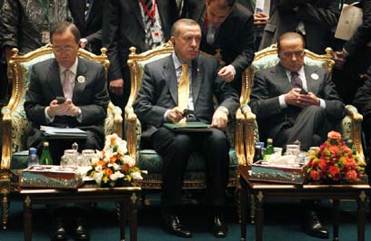 משקיפים בפסגה. ברלוסקוני, ארדואן ובאן (צילום: AP)