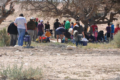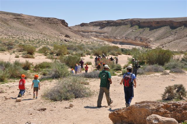 יורם חמו, איש רשות הטבע והגנים ומתנדב ביחידה, הוביל את הטיול. אחרי הסבר קצר, יצאה השיירה אל התחנה הראשונה: ארוחת בוקר בשטח. מחניון חצבה פנינו מערבה אל כביש 227. דקות ספורות של נסיעה משחררות אותך מהציוויליזציה, ומכניסות אותך עמוק אל נשמתו של המדבר. בניגוד לאוויר היבש והמאובק, שבדרך כלל מספק נוף צחיח על טהרת גווני החום, נחשפנו למורדות שנצבעו ירוק ולשוליים מעוטרים בפריחה רכה של פרחי מדבר ורודים וסגולים.