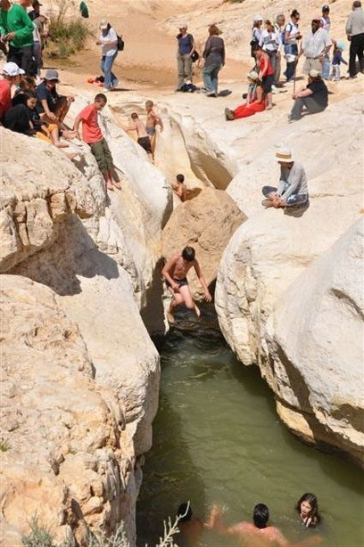 אין כמו טבילה קרירה באמצע המדבר. מתרחצים בעין יורקעם