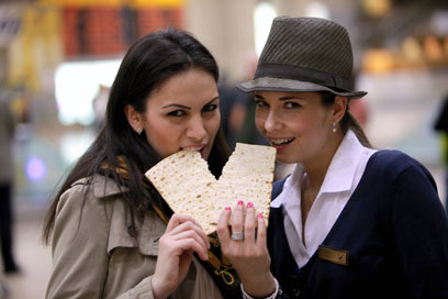 על פניו אין שום קשר בין זוג הודים שמתגורר בהמבורג כמעט ארבעים שנה, עיתונאיות במגזין אוכל ידוע בסופיה, דיילות אוויר מחברת התעופה הרומנית, אימאם מוסלמי מדרום אפריקה, תיירת נורבגית עם תרמיל טרק ופסיכיאטרית מרומניה. ובכל זאת, בליל חמישי האחרון, בטרמינל 3 בנתב"ג, היה משהו פריך שחיבר ביניהם - מצות. למה? כי הדבר הראשון שעשו כשנכנסו לאולם מקבלי הנוסעים היה לטעום מצה כשרה לפסח שהגשנו להם. לרובם היה זה מפגש ראשון איתה, גם לאלו מביניהם שכבר שמעו על קיומה.
