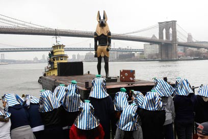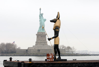 רק השבוע קראנו בהגדה של פסח על יציאת מצרים, והינה זו הגיעה בסוף השבוע האחרון, בגלגול שונה לגמרי ובלוקיישן רחוק רחוק מהמזרח התיכון: ניו יורק. מן האופק הופיע פתאום פסל של האל המצרי הקדום אנוביס, בכניסה דרמטית א-לה חציית ים סוף, בואכה נהר ההאדסון.