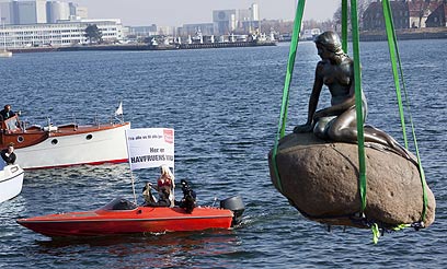מי שכבר עזבה את נמל הבית שלה בקופנהאגן בדרכה לצד השני של העולם היא בת הים הקטנה, פסלו המפורסם של אדוארד אריקסון שנוצר בהשראת סופר הילדים האנס כריסטיאן אנדרסן. פסלה של העלמה הוסר ממקומו הקבוע בנמל בירת דנמרק והועמס בעזרת מנוף על משאית בדרכו לשדה התעופה. היעד הסופי של הפסל המונומנטלי: שנגחאי שבסין, שם ייערך יריד ה'וורלד אקספו'.