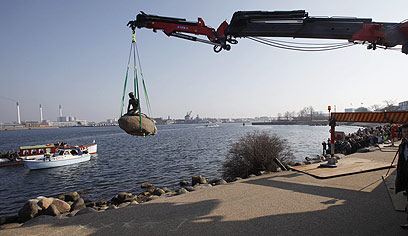 בת הים הקטנה מוסרת ממקום מושבה בנמל קופנהאגן (צילום: AFP)