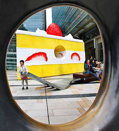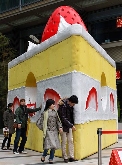 רק טבעי שהאמריקנים יעשו אמנות מהאוכל שלהם, המרשמלו. ומה עם היפנים? היינו מדמיינים שהם יילכו דווקא על סושי. ובכן, הפתעה. בטוקיו הפתיעו אותנו והקימו פסל ענק דמוי עוגה בשם "עוגה מחייכת, עוגה שמחה" (Smile Cake, Happy Cake) לרגל חגיגות השנה השלישית לייסוד רובע רופונגי בעיר הפנימית של הבירה.