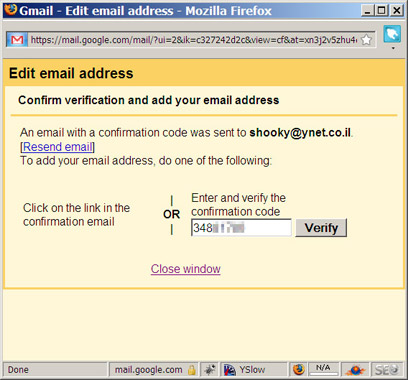 העתיקו את הקוד שקיבלתם והדביקו אותו לתוך השדה המתאים בטופס של Gmail: