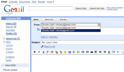 ו. בפעם הבאה שאתם שולחים הודעה מ-Gmail יופיע במסך ה-Compose Mail תפריט נגלל חדש שיאפשר לכם לבחור מאיזו כתובת אתם רוצים לשלוח את ההודעה.