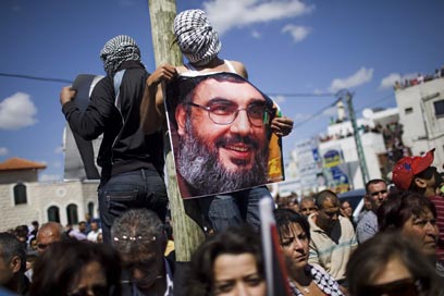 תמונות מזכ"ל חיזבאללה בעצרת בסכנין (צילום: AP)