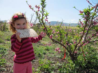 אור לברון אסולין, בת שנתיים, במטעי הדובדבן במטולה (צילום: יעל שביט)