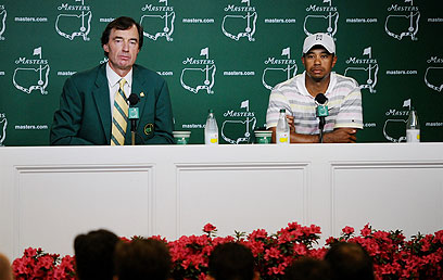 וודס במסיבת העיתונאים. מאמין ביכולתו לחזור לנצח (צילום: AFP)