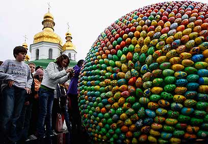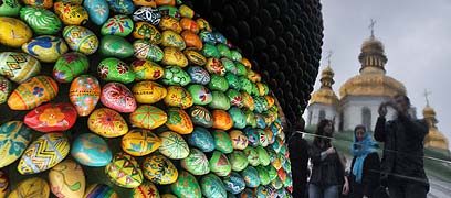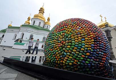 בניגוד לאוסטריה, באוקראינה דווקא מכבדים את מוסדות הדת ומשתדלים שלא לדרוך על ביצים. מאות כאלה עשויות עץ הוצבו בפיתחה של קתדרלת קייבו-פצ'רסקאיה לברה, לרגל חג הפסחא החל ב-2 באפריל.