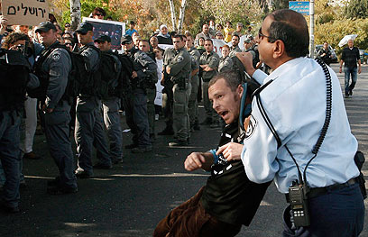 את גרוסמן ובורג. מיד לאחר מכן, מספרת אחת המפגינות, "המשטרה ביקשה מהאנשים להתפזר. ברגע שהם יצאו מהמתחם, היא התבייתה על שניים ממארגני ההפגנות, ושלפה אותם מתוך הקהל לתוך הניידת. הם נהגו בצורה ברוטלית".