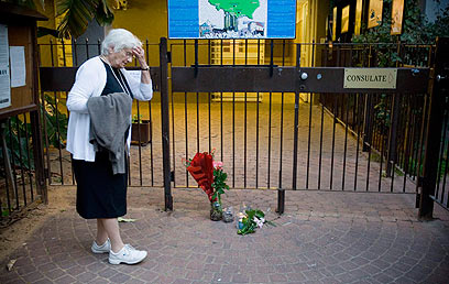 זרים בפתח שגרירות פולין בתל אביב. הישראלים באו לנחם (צילום: AP)