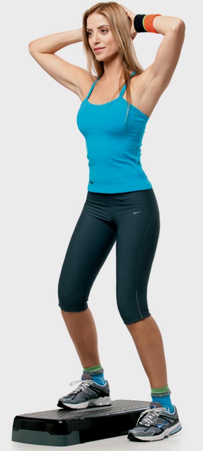 את כבר עולה במדרגות במקום במעלית, מודעת לחשיבות התנועה לבריאות שלך. זה נהדר, אבל הגיע הזמן לעלות מדרגה באימון של ממש על מדרגה אירובית. האימון שלפנייך ישתף את כל קבוצות השרירים בפעילות (הירכיים, הישבן, הזרועות, הבטן, הגב), יעלה את הדופק, ישפר את שיווי המשקל שלך ויאתגר גם את המוח לשיפור הקואורדינציה. השתכנעת? לפני שתעלי על המדרגה, שימי לב לדגשים הבאים: