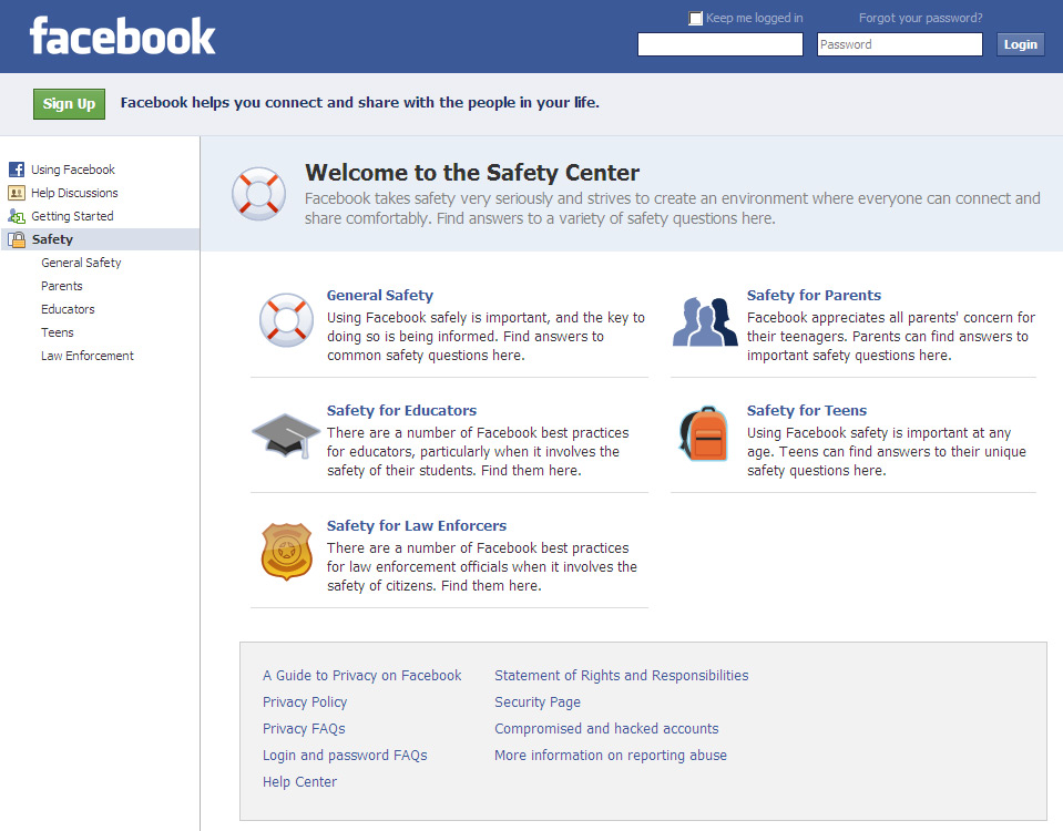 בפועל, מדובר בריכוז של עמודי עזרה והדרכה למורים, הורים ונוער לגבי כללי זהירות ברשת בכלל, ופייסבוק בפרט. כך, מציעים בפייסבוק לא לענות לבריוני-רשת ואנשים שמציקים, למחוק אותם מרשימת החברים, ולדווח עליהם לפייסבוק באמצעות כפתורי הדיווח.
