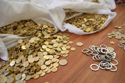 שקים עם המטבעות. "אפילו השוטרים לא מזהים" (צילום: אבישג שאר-ישוב)