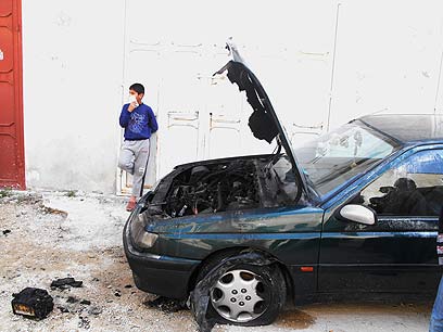 אחד מכלי הרכב שהוצתו בג'ינסאפוט (באדיבות רבנים לזכויות אדם)