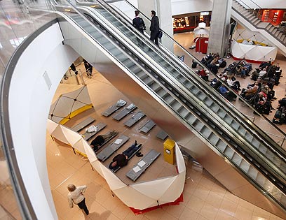 מיטות מתקפלות במקום נוסעים. שדה התעופה בהמבורג (צילום: רויטרס)
