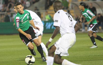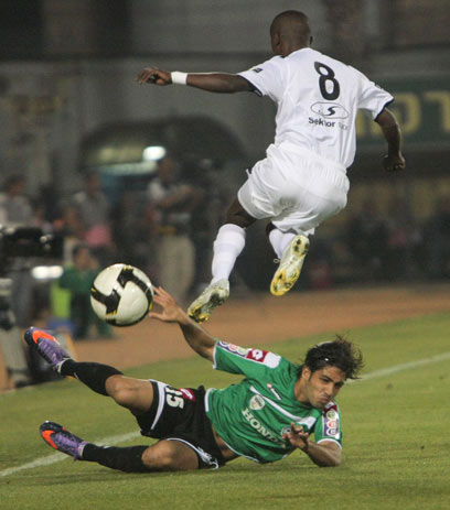 38': אחרי שסטויקיץ' עצר נגיחה של יניב קטן השתחרר ולדימיר דבאלישווילי משומרו ובעט החוצה.
