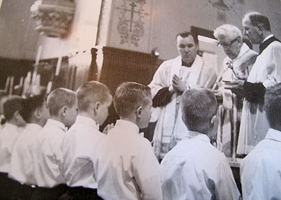 האב מרפי (ראשון משמאל) עם ילדים בכנסייה, ב-1960 (צילום: AP)