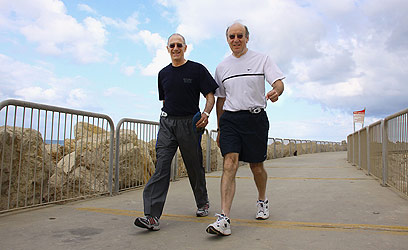 גם בחופשה בישראל מוצאים זמן להתאמן. פישר (משמאל) ושותפו טרנר (צילום: דנה קופל)