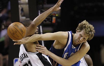 נוביציק מול דאנקן. "נמשיך להילחם עד שהסיפור יגמר" (AP)