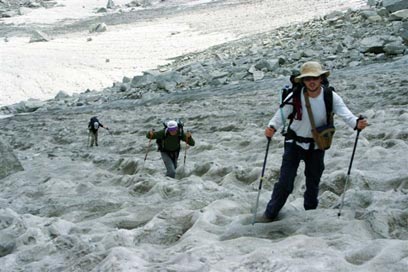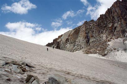 הטיפוס היה ארוך יותר מזה של היום הקודם, והירידה ממנו קשה - קודם דרדרת נוראית, ואחר כך חצייה של קרחון. שם איגור כמעט איבד את תרמילו, שהחליק על הקרחון ונעצר כמה מטרים מאחד הסדקים הגדולים שבקרח.