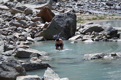 רועי משתכשך במי קרחון. את הצרחות שלו שמעו לפחות עד אוזבקיסטן...
