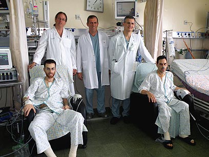 ישובים: אבוחצירא ובן אילוז. עומדים: ד"ר אמיר, פרופ' ערבות והמרדים ד"ר אריק עדן (צילום: אלי דדון)