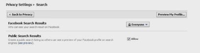 כל מי שמחפש בפייסבוק ובמנועי חיפוש חיצוניים יכול לראות כעת עדכוני סטטוס שלכם בפייסבוק. כדי להגביל את החשיפה בתוצאות החיפוש, עברו לדף Privacy Settings ולחצו על Search. בעמוד זה תוכלו לקבוע מי יכול לצפות בתוצאות חיפוש שלכם בפייסבוק ואם עדכוני הסטטוס שלכם יהיו נגישים למנועי חיפוש חיצוניים.