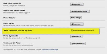 נמאס לכם שהפרופיל האישי שלכם נראה כמו מזבלה? תוכלו למנוע מחברים לפרסם עדכונים בקיר שלכם בעמוד Profile Information. אגב, ברירת המחדל קובעת שרק אתם יכולים לצפות בעדכוני סטטוס שפירסמו אחרים על גבי הקיר שלכם.