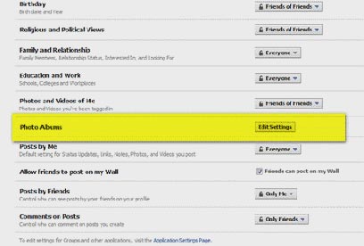 לא מוצא חן בעיניכם שזרים צופים בתמונות שלכם? חזרו שוב ל-Privacy Settings ובחרו ב Edit Settings לצד Photo Albums. בעמוד שייפתח תוכלו לקבוע מי יוכל לצפות בכל אלבום – חברים, חברים של חברים או כולם.
