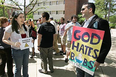 בשבוע שעבר, הוא אמר כי "נשים רבות לא מתלבשות בצניעות, משחיתות גברים ומפיצות את הניאוף בחברה, כתוצאה מכך גוברות רעידות האדמה". מקרייט וחברותיה באוניברסיטה במדינת אינדיאנה שבארה"ב לא עמדו בפיתוי - והחליטו להוכיח למטיף הקיצוני את טעותו - על-ידי לבישת מחשופים עמוקים במיוחד.