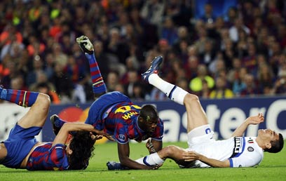 ז'וזה מוריניו עשה לברצלונה בית ספר - אלופת אירופה מחוץ לליגת האלופות. נראה כי לא לחינם ירד דירוג האשראי של ספרד. למרות ששחקניו של פפ גווארדיולה שיחקו הערב (ד') ביתרון מספרי בשדה משך יותר מ-60 דקות, הם ניצחו רק 0:1 והודחו בחצי הגמר. זאת, בעקבות הניצחון של אינטר 1:3 במשחק הראשון.