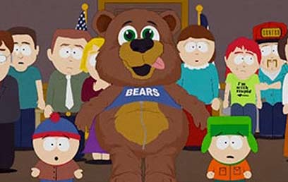 "היינו עומדים לצדכם אם לא היינו כה מפוחדים", כתב בארט סימפסון על הלוח בעונש המתחלף שלו, בפרק ששודר השבוע בארצות הברית, אחרי שיוצרי סאות'פארק קיבלו איומים על חייהם. האיומים נשמעו בגלל דמות של הנביא מוחמד שמתחבאת בתוך תחפושת של דוב.
