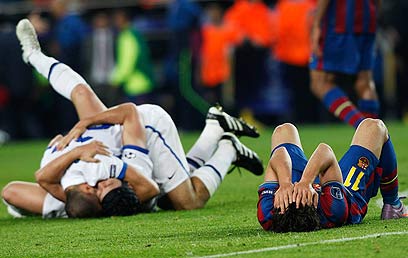 הלם קטאלוני, היום שאחרי. יממה אחרי ההדחה המפתיעה של ברצלונה בידי אינטר בחצי גמר ליגת האלופות, ז'ואן לאפורטה, נשיא אלופת אירופה היוצאת, הגיע לבקר את השחקנים במתחם ב'לה מסיה'.