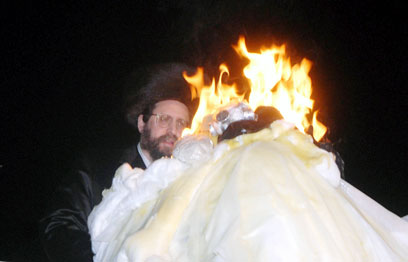 האדמו"ר מבויאן עם ההדלקה המסורתית