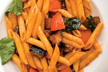בסיציליה נותר עד היום מנהג מן הימים שבהם תושבי האי היו באמת עניים מאוד. במקום גבינה, היו מפזרים על הפסטה פירורי לחם ישן מטוגנים, שנראו קצת כמו גבינת פרמזן. שווה לנסות. רצוי להשתמש בחציל מזן בלדי. אם משתמשים בחציל אחר, יש להמליח את קוביות החציל, להשהות אותן עד שהן מתחילות להפריש נוזלים, ולנגב בנייר סופג או במגבת לפני הטיגון. במתכון הבא אנחנו משתמשים בהרבה מאוד שום, אבל אנחנו לא משאירים אותו זמן ארוך בתוך הרוטב. אחרי שהוא נותן את טעמו לשמן אנחנו מוציאים אותו וזורקים אותו. זה נכון גם לרוטבי הפסטה האחרים. יוצא מן הכלל הוא רוטב אליו אוליו, שם השום הוא מרכיב עיקרי.