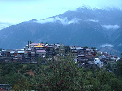 בהמשך עמק סאנגלה. הכביש שמוביל אליו הוא 18 ק"מ של עלייה מצמררת שערות עם מצוק של כקילומטר לצד הדרך (שאחר כך גם צריך לעשות חזרה). ממש בנקודה הכי צרה של הכביש, בתוך מערה, התמקם באבא (סאדהו, איש קדוש) לפני שנים רבות. איש חביב ושופע שמחה. חסיד אמיתי שמציע לכל עובר אורח ונוסע לעשן איתו צ'ילאם (כלי לעישון חשיש) ולקבל את ברכת הדרך. בעמק סאנגלה פזורים כפרים יפהפיים בין מטעי תפוחים וביניהם מבצבצים מקדשים הינדו-בודהיסטיים שבנויים בשילוב מעניין של עץ ואבן צפחה וזוקרים חרוטים מרובעים כלפי שמיים.