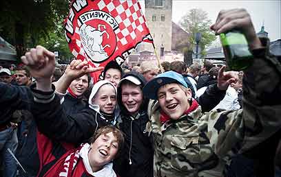 אוהדי טוונטה חוגגים. רגע היסטורי למועדון שנוסד ב-1965 (צילום: AFP)