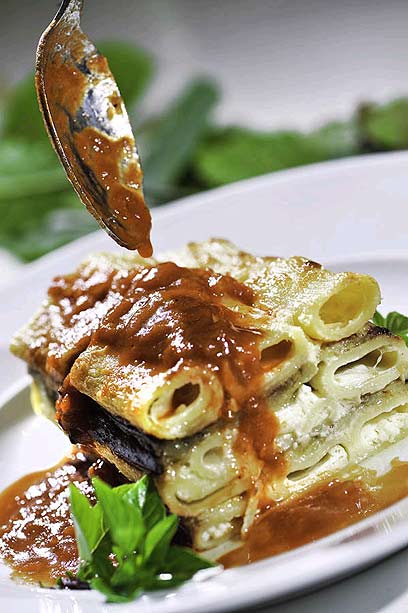 פסטיסיו חצילים, עגבניות וצנובר (צילום: דודו אזולאי)