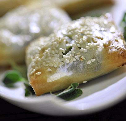 בורקס יווני מבצק פילו הממולאים בתרד ושני סוגי גבינות
