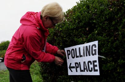 הכנות אחרונות. שילוט לקלפי בסקוטלנד (צילום: AFP)