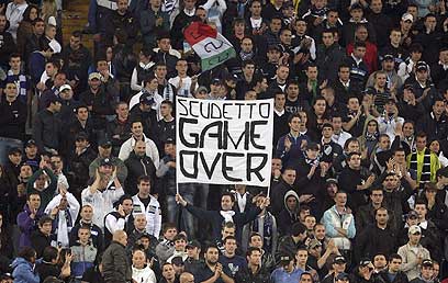 אוהדי לאציו עושים הפוגה משירי אהדה לאינטר (צילום: AP)