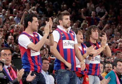 פויול, בויאן, פיקה ובוסקטס הגיעו לעודד את קבוצת הכדורסל (צילום: AFP)