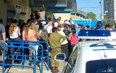 המהומה בקרית אליעזר. ספסרים קנו כרטיסים? (צילום: עדי סרדס)